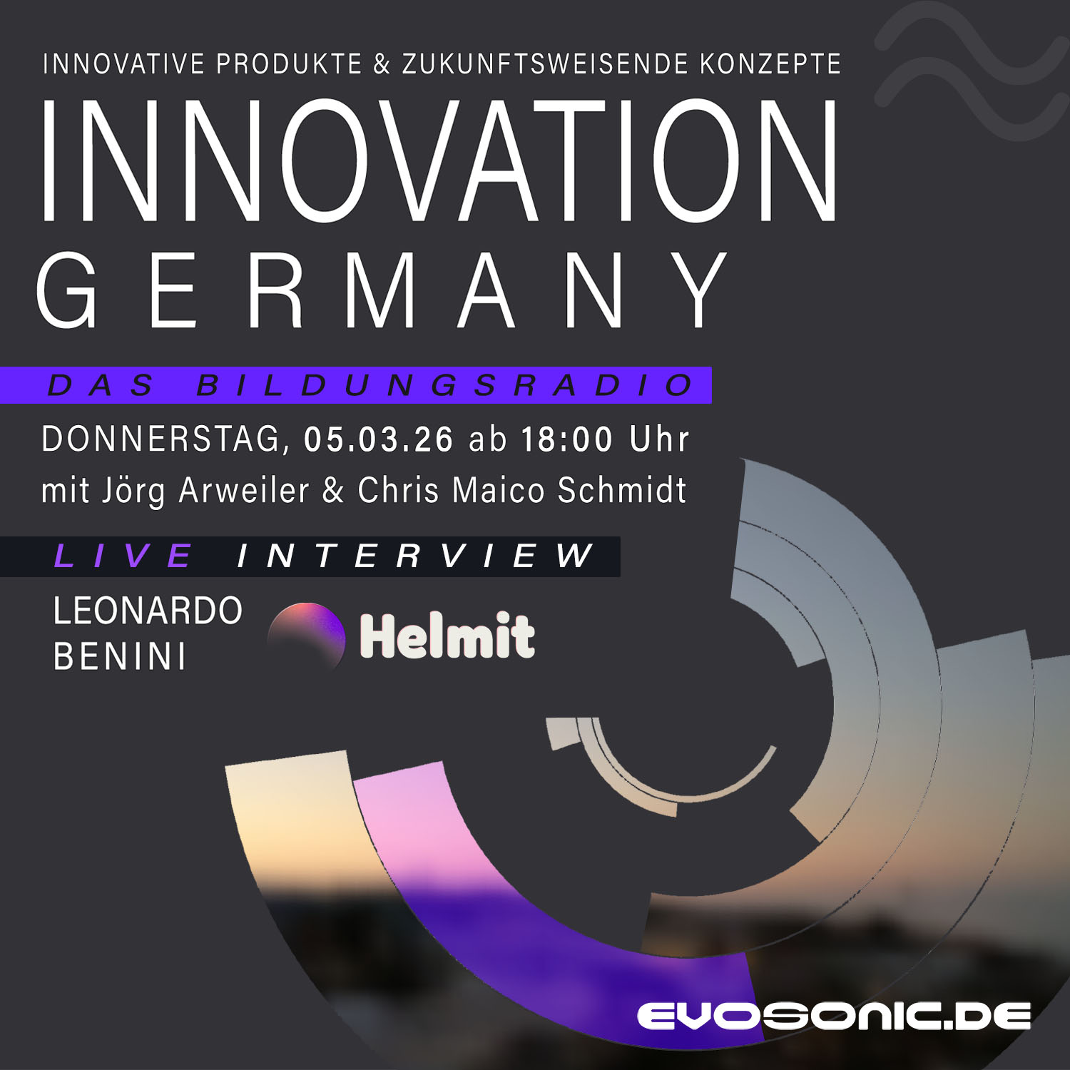 wir laden Sie herzlich ein zu einer besonders wichtigen Ausgabe von **“INNOVATION GERMANY“**, die am **Donnerstag, den 05. März 2026, um 18 Uhr live auf EVOSONIC RADIO** ausgestrahlt wird!