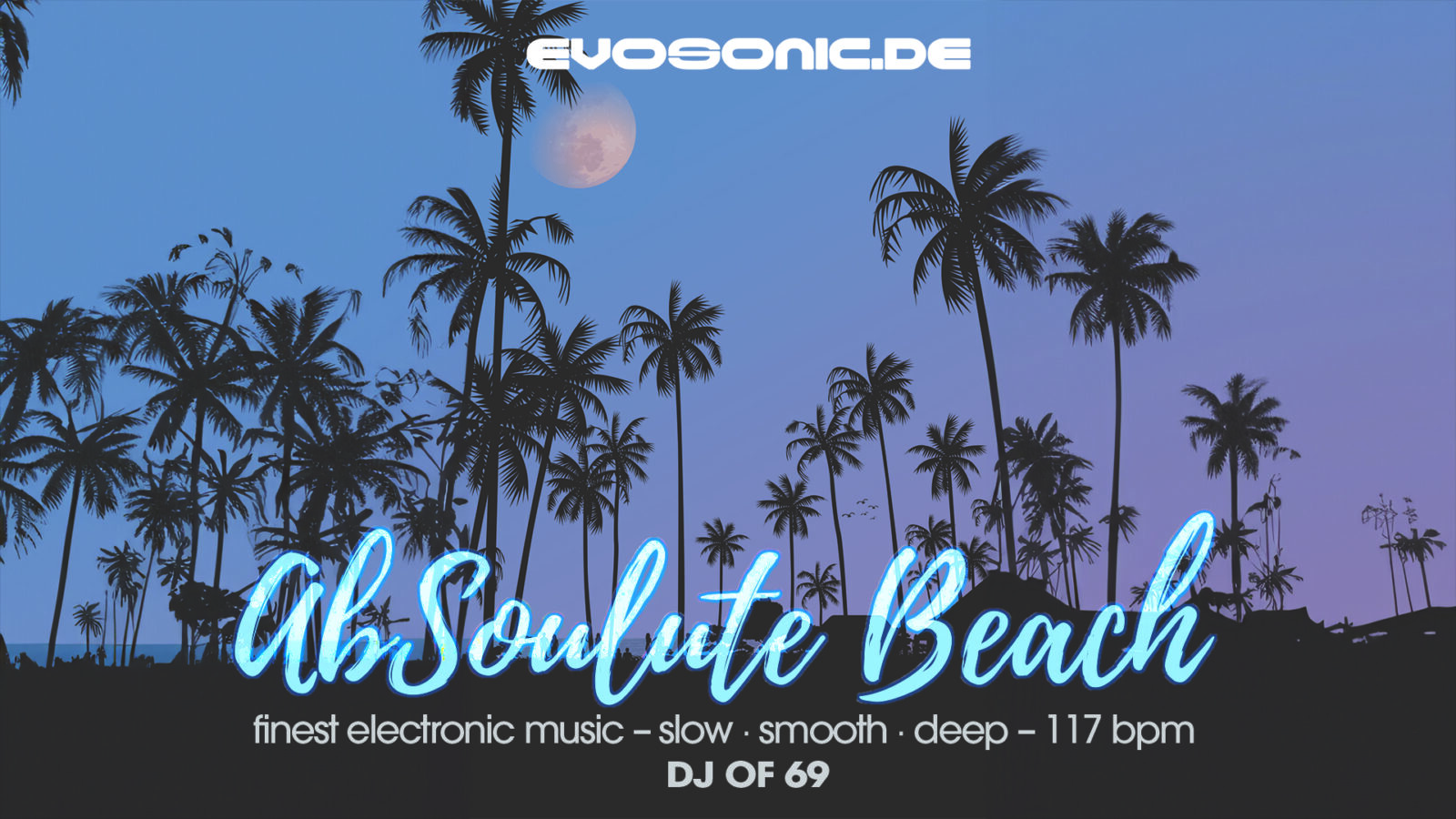 Every Thursday night on EVOSONIC Radio there is an hour with the best electronic music in 117bpm – LIVE in the Mix. DJof69 presents beach feelings of white beaches and hot sand, under palm trees and by the blue water along with blood red sunsets. No matter if it’s spring, summer, autumn or winter – warm thoughts are provided. AbSOULute BEach!